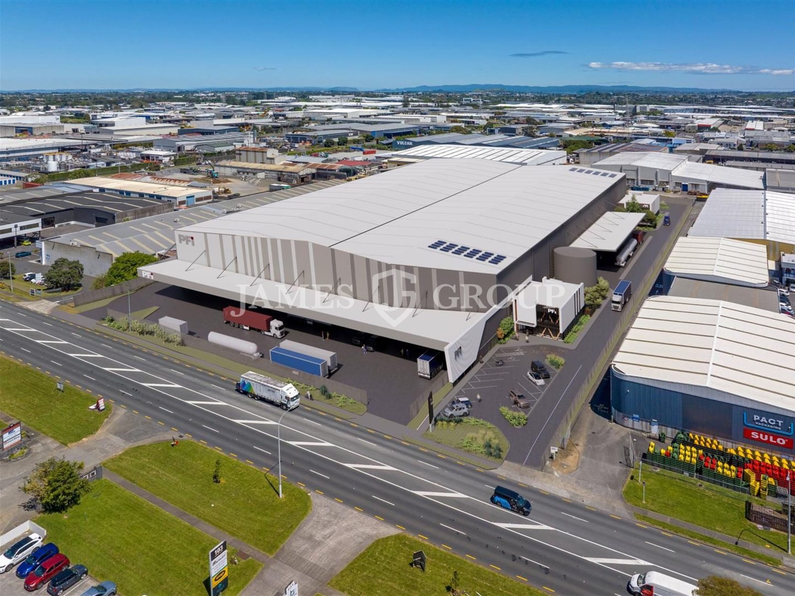 The 12.5m high-stud 3,600m² warehouse is complemented by a 250m² corporate grade split-level office. The building sits on a prominent corner site in the heart of East Tamaki and includes a 870m² canopy for all weather protection. The building targets a 5 Green Star rating and will be available Q4 2026. Options exist to split the building into tenancies of 3,600m²+ or lease the full site of 15,100m².